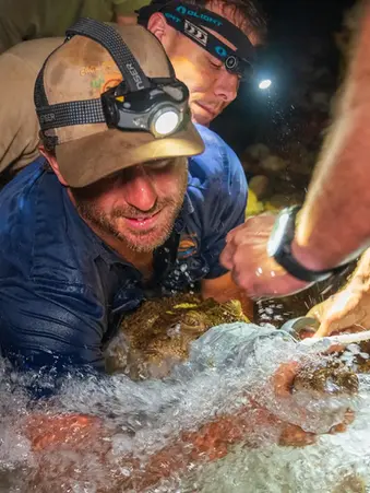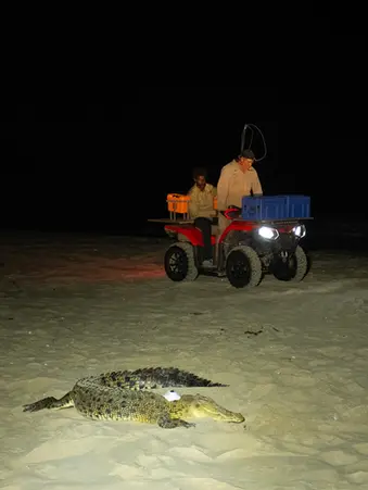 Fitting satellite trackers to crocodiles within isolated sand dune lakes and on animals utilise turtle breeding ground on crab island, to under their seasonal movement patterns.